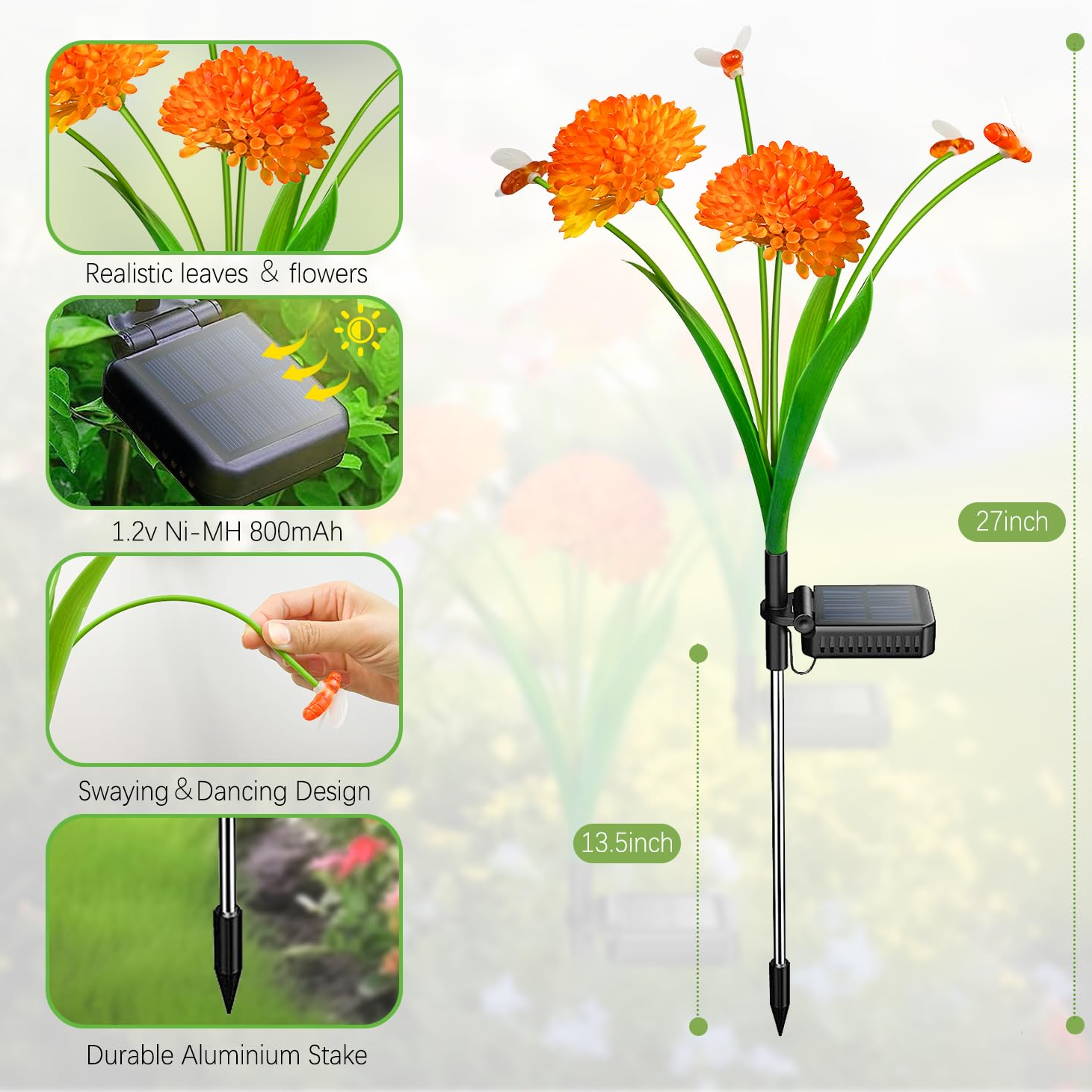 Package Includes: Solar flower lights with bee design